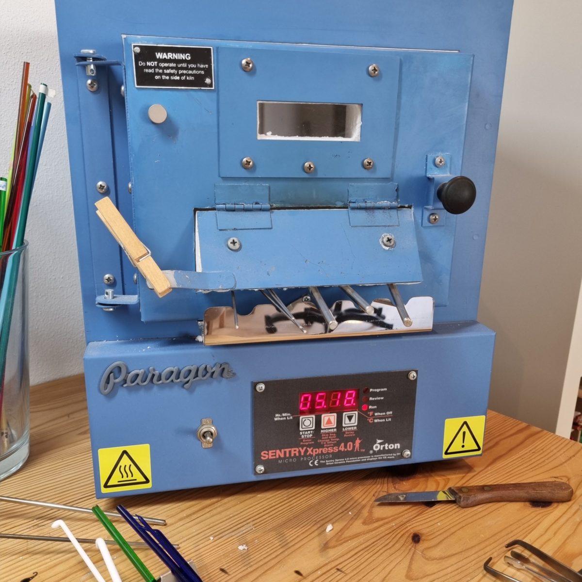 De oven lekker aan het vullen #glaskralenbranden #lampworking...