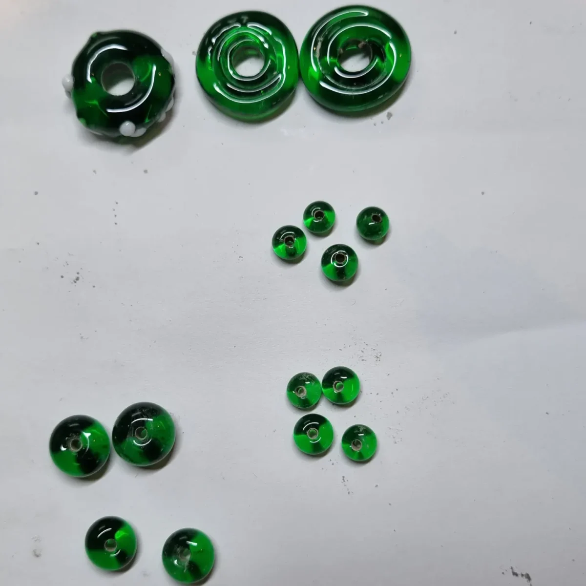 Resultaten van een kennismakingsworkshop. Tijdens de workshop gaan de kralen de oven in. Na gecontroleerd afkoelen haal ik ze van...